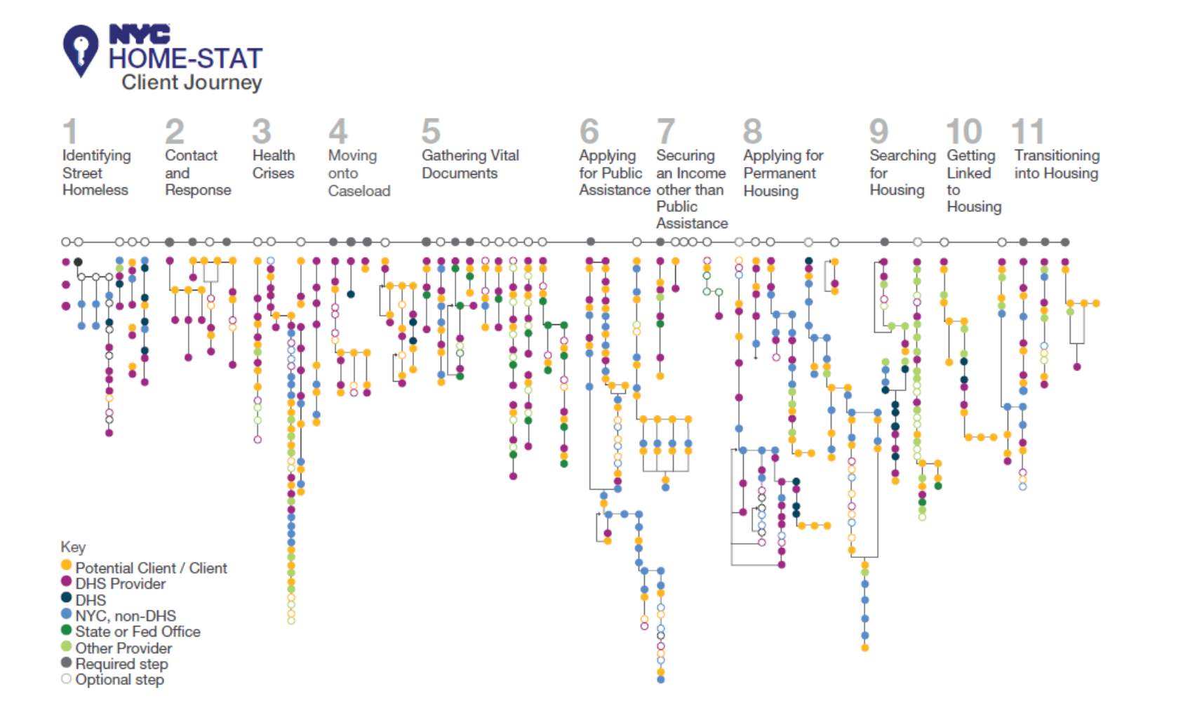 This is the journey of homeless people (clients) when they apply for a shelter, gathered from our research.